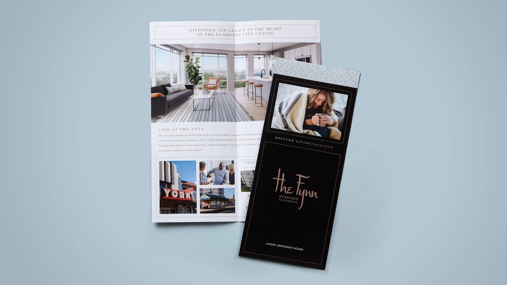 In Gaelic, the name Fynn means bright. That’s why we chose it for this boutique-style, multifamily project. Because while Elmhurst is just one commuter train stop from Chicago’s loop, it has a bright light—a quaint downtown all its own. One that’s filled with restaurants and amenities. We were thrilled to create its entire brand, from its name and positioning to the collateral and signage. We took the authentic feeling of historic Elmhurst and staged it like a boutique hotel. This strategy worked—within two months of opening, 91 percent of the units were occupied.